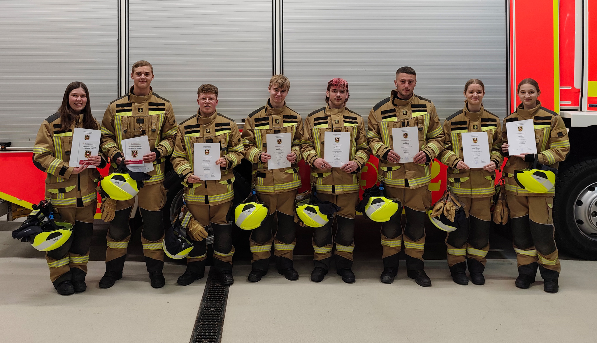 Nach insgesamt acht Wochen Ausbildungszeit haben acht Kameradinnen und Kameraden der Feuerwehr Zimmern ob Rottweil am 22. November erfolgreich ihre Grundausbildung abgeschlossen. Seit dem 19. September fanden hierzu regelmäßig Unterrichtseinheiten am Freitagabend sowie praktische und theoretische Übungen am Samstagvormittag statt. Ausbildungsstandorte waren die Stützpunkte in Rottweil und Deißlingen.