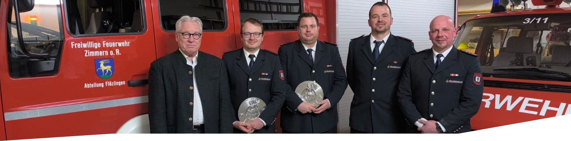 Eine besondere Ehrung wurde Frank Hauser und Abteilungskommandant Benjamin Grießhaber zu Teil. 25 Jahre aktiver Einsatzdienst haben beide im Jahr 2026 absolviert. Das bedeutet ein Vierteljahrhundert sich ehrenamtlich, nicht immer ungefährlich, für andere einzusetzen. Dafür gilt großer Respekt verbunden mit dem Dank und der Anerkennung. Hierfür bekamen beide Kameraden einen Zinnteller der Einsatzabteilung überreicht. Die „offizielle“ Ehrung des Landes gibt es an der Gesamtversammlung.